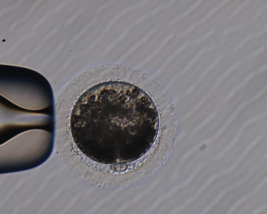 Video showing two mature oocytes being subjected to intracytoplasmic sperm injection (ICSI). The technique shown is when the sperm is directly injected through the zona pellucida.