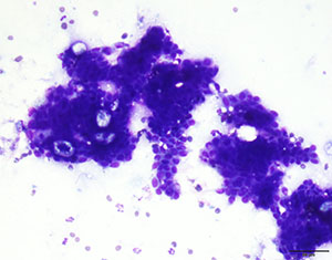 Cytology of the mass returns and is shown. Which of the following are possible interpretations of the cytology? (You may select more than one option.)