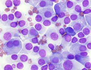 Cytologic evaluation of an aspirate of the ventral cervical mass is shown. Which of the following is a correct interpretation of the sample?