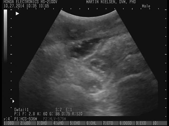 Ascarid parasites visualized within small intestinal loops by transabdominal ultrasonography in a naturally infected foal.
