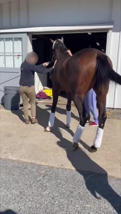 Ataxia in a horse, with left-sided head tilt (cranial nerve 8) and right-sided muzzle deviation (cranial nerve 7).