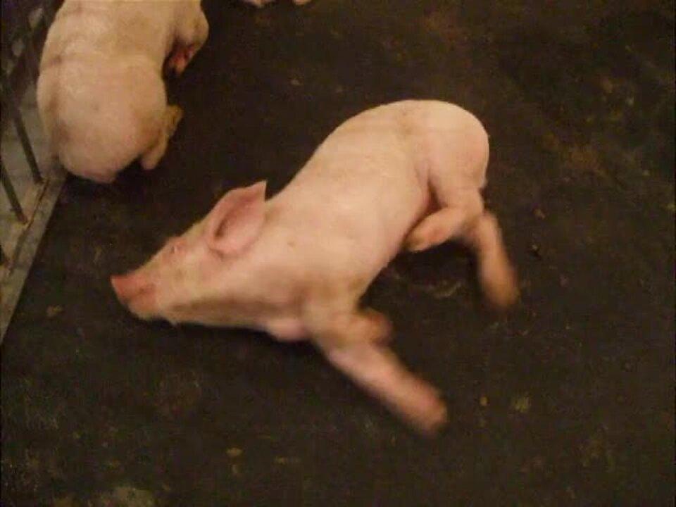 Pig affected by Streptococcus suis meningitis, showing typical signs of recumbency and paddling. Note that this pig was humanely euthanized immediately after the video was taken.