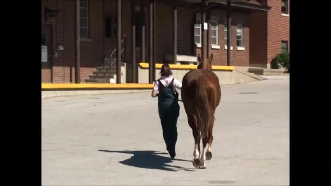 This horse is lame in the right rear limb. There is a marked sacral rise as the right rear limb strikes the ground. This motion reduces concussion on the lame limb.