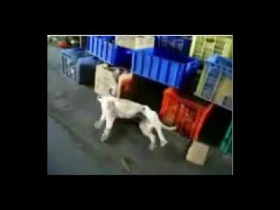 Video of a dog with strychnine toxicosis. Note the stiff gait and muscle rigidity progressing to lateral recumbency with opisthotonus and hyperextension of the limbs. Note also facial muscle rigidity and onset of tetanic seizures.
