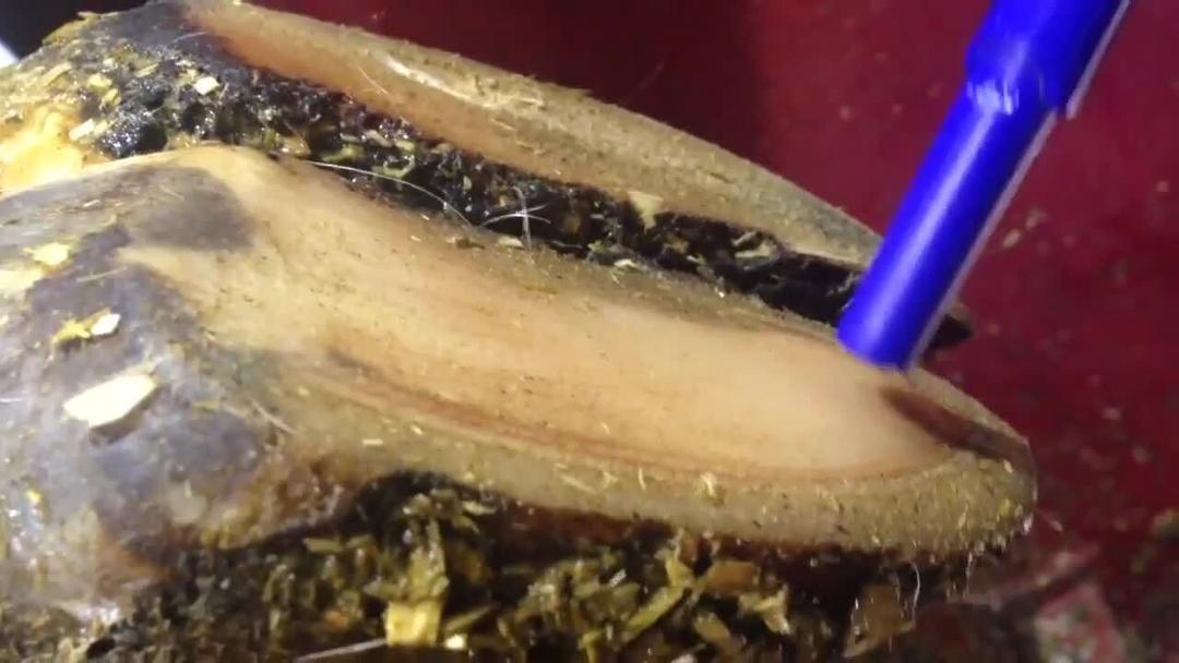 This video shows the amount of give on an extremely thin sole in the hoof of a cow.