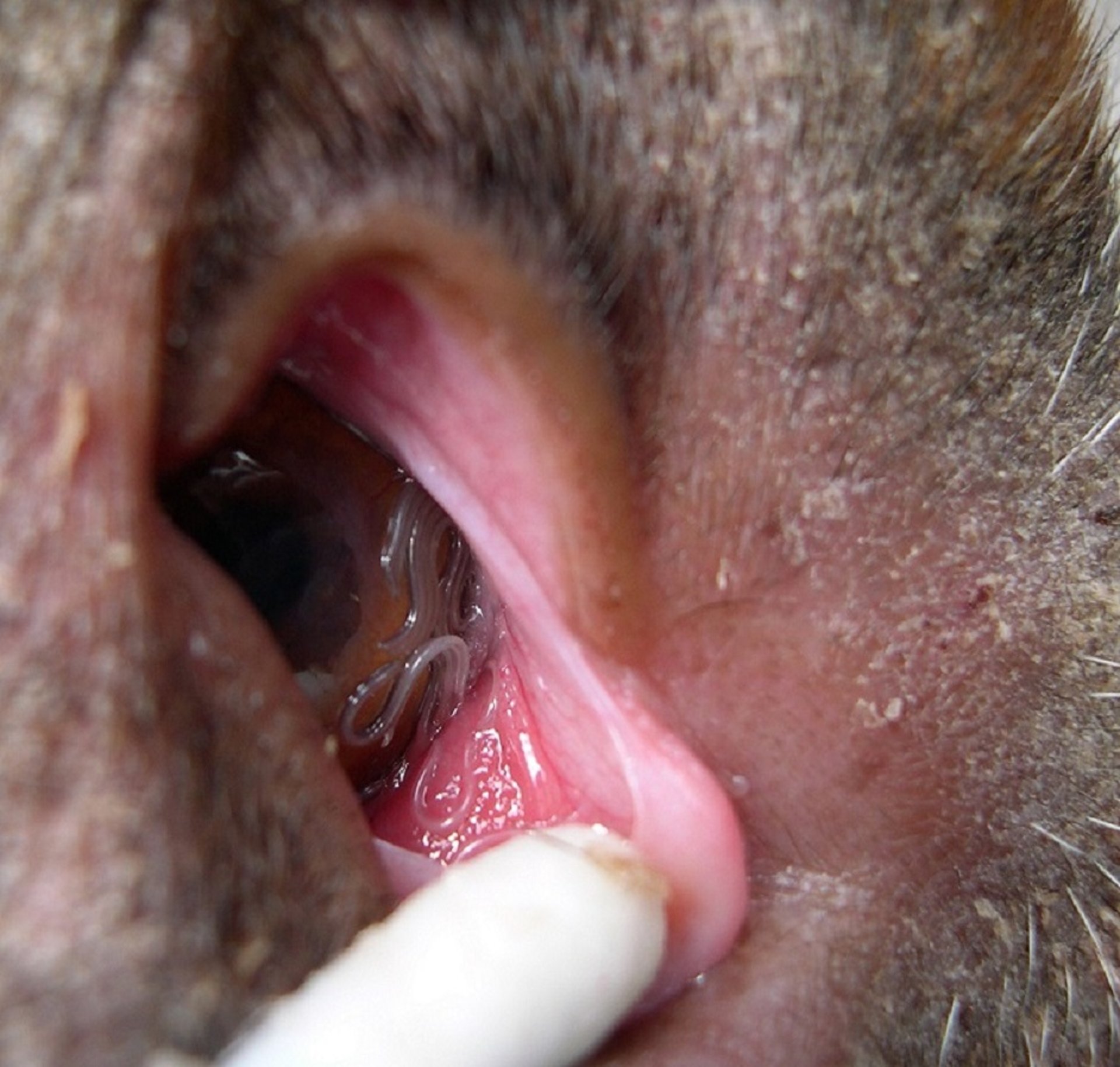 Clinical signs of thelaziasis include excessive lacrimation and epiphora, ocular pruritus, conjunctivitis, keratitis with corneal opacity and ulceration, hyperemia, and rarely, blindness. After local anesthetic, diagnosis and treatment are readily accomplished by observing and removing the parasites with forceps. Thelazia spp infections have been successfully eliminated from dogs with administration of ivermectin at 0.2 mg/kg, SC; milbemycin oxime at a minimum dosage of 0.5 mg/kg, PO (two treatments 1 week apart improved efficacy); or spot-on treatment with 2.5% moxidectin. Administration of ocular solutions (1% moxidectin or 2% levamisole) or ointments (1% levamisole or 4% morantel) also may be effective, though they may cause irritation. Infection with T callipaeda has been prevented for the full season in dogs with administration of sustained-release moxidectin at 0.17 mg/kg, SC, with milbemycin oxime, PO, at the dosage recommended for heartworm prevention, and with ivermectin at 0.2 mg/kg, PO. Milbemycin oxime administered at the minimum oral dosage of 2 mg/kg showed high therapeutic efficacy in cats infected with T callipaeda.